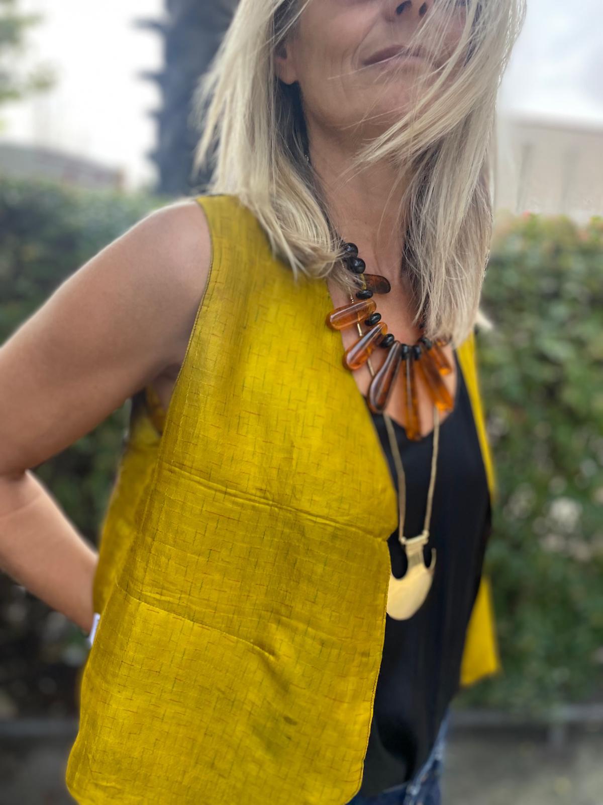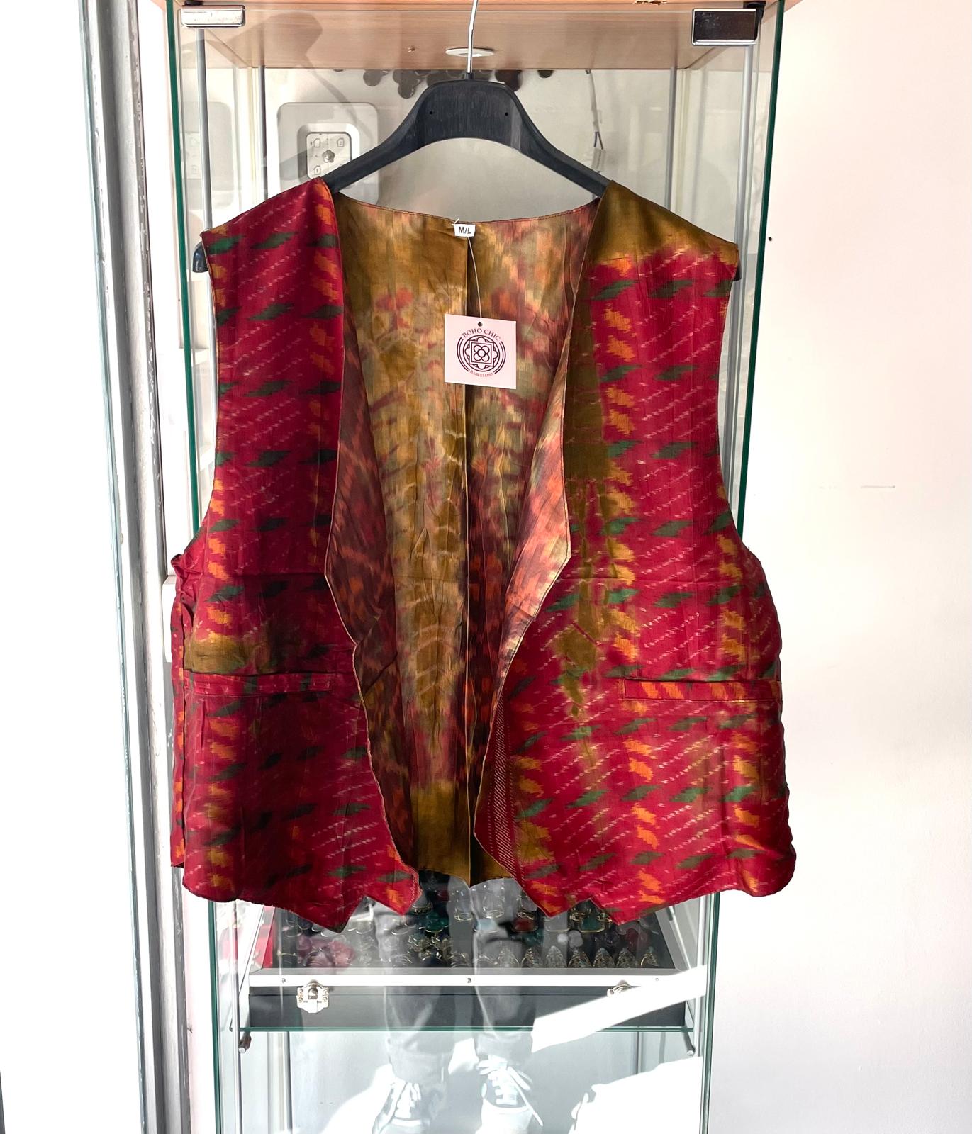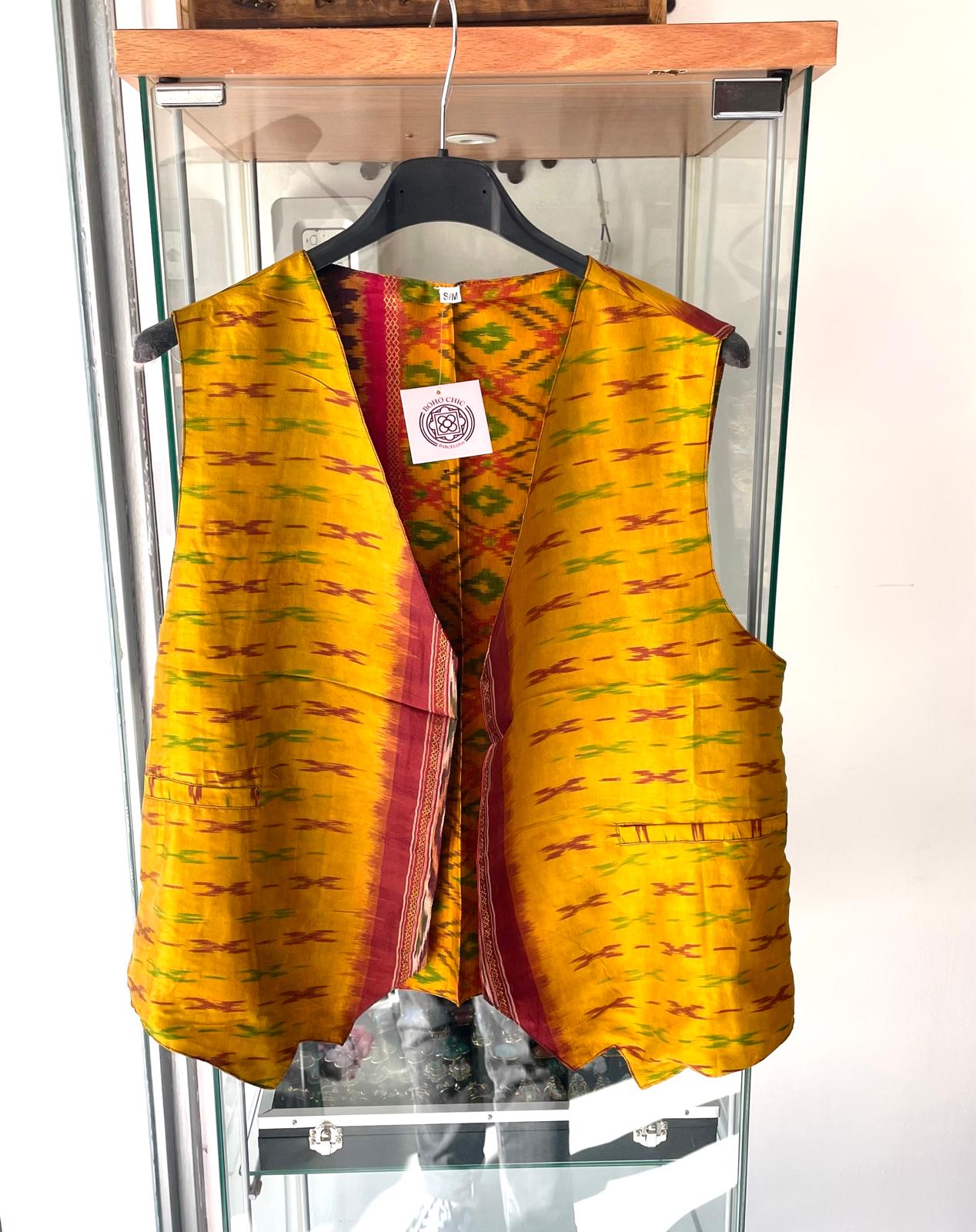 Chaleco seda Ikat, reversible.